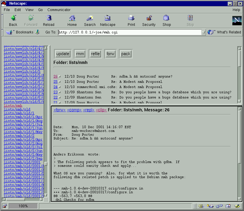 Wmh produces a Web (and eventually Wap) interface to the nmh message handling system. It builds